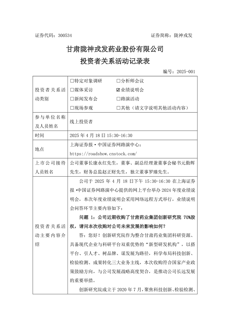2024年度業(yè)績說明會投資者關(guān)系活動記錄表