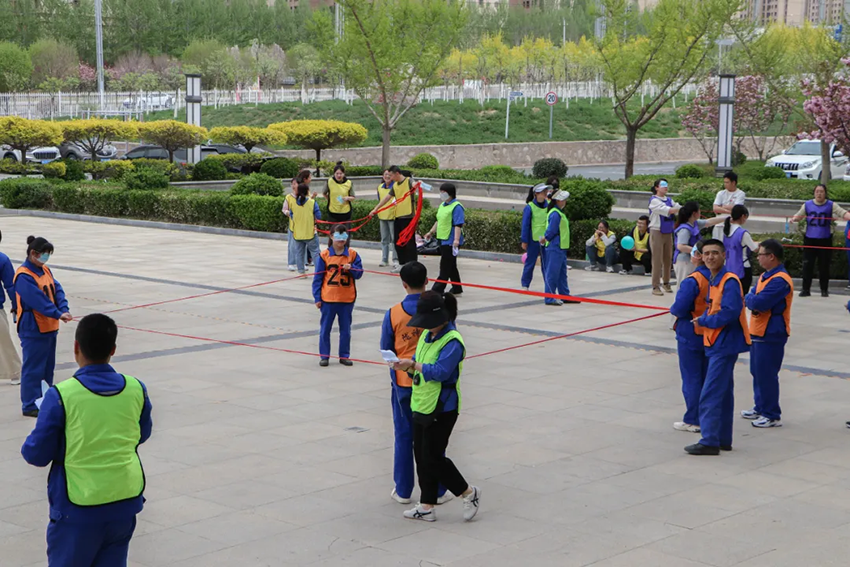 “盲人方陣”考驗(yàn)的則是團(tuán)隊的溝通與協(xié)作能力。參賽職工們蒙住雙眼,僅憑指揮隊員的語言引導(dǎo),通過不斷調(diào)整和嘗試,在規(guī)定時間內(nèi)將繩拉成指定的正方形,充分展現(xiàn)了團(tuán)隊默契。