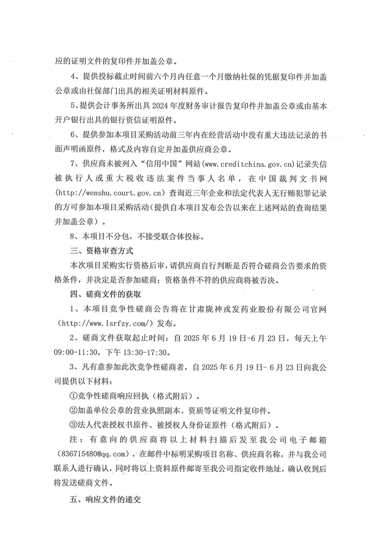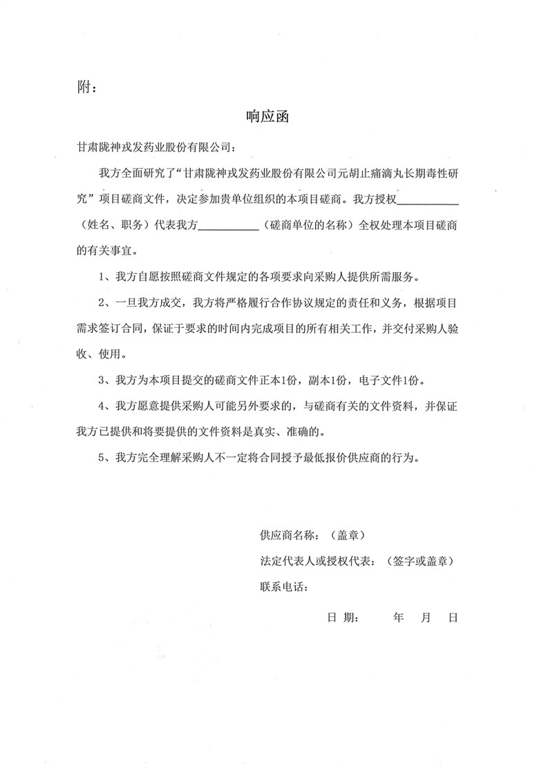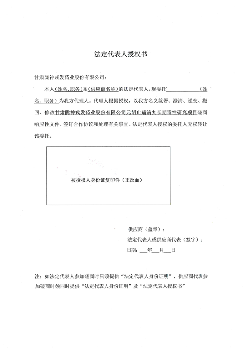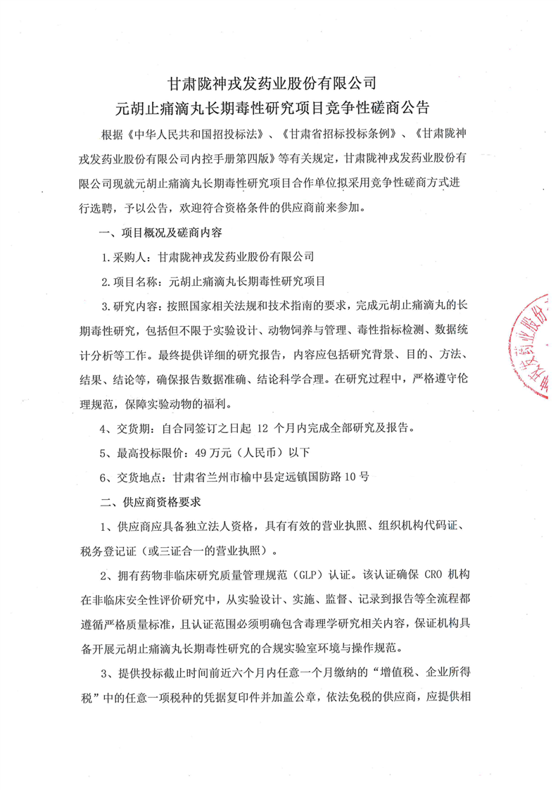 甘肅隴神戎發(fā)藥業(yè)股份有限公司元胡止痛滴丸長期毒性研究項(xiàng)目競爭性磋商公告