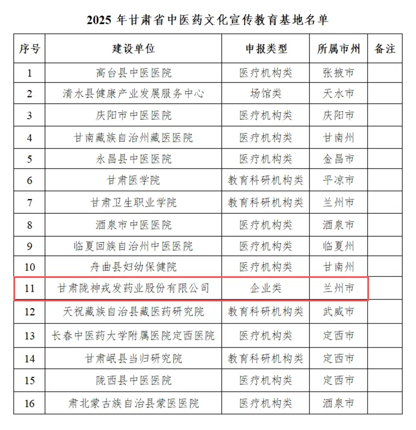 再添殊榮!甘肅隴神戎發(fā)藥業(yè)股份有限公司獲評(píng)甘肅省中醫(yī)藥文化宣傳教育基地